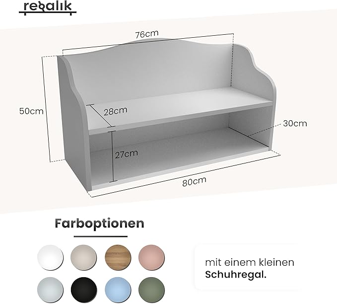 Ławeczka została wykonana z wysokiej jakości płyty laminowanej w kolorze kaszmiru o grubości 18 mm, co zapewnia stabilność, trwałość oraz odporność na codzienne użytkowanie. Solidna konstrukcja gwarantuje komfort podczas zakładania butów, a praktyczna półka pod siedziskiem pozwala utrzymać porządek i wygodnie przechowywać obuwie.