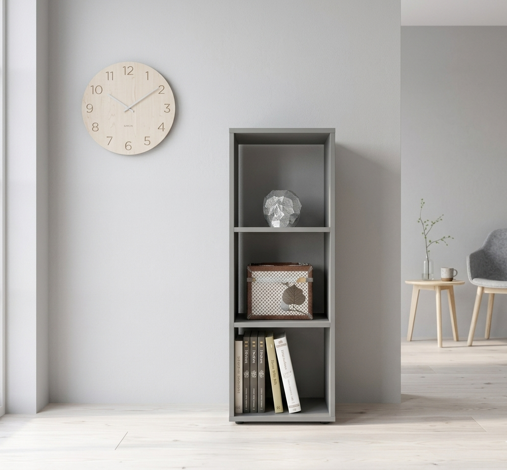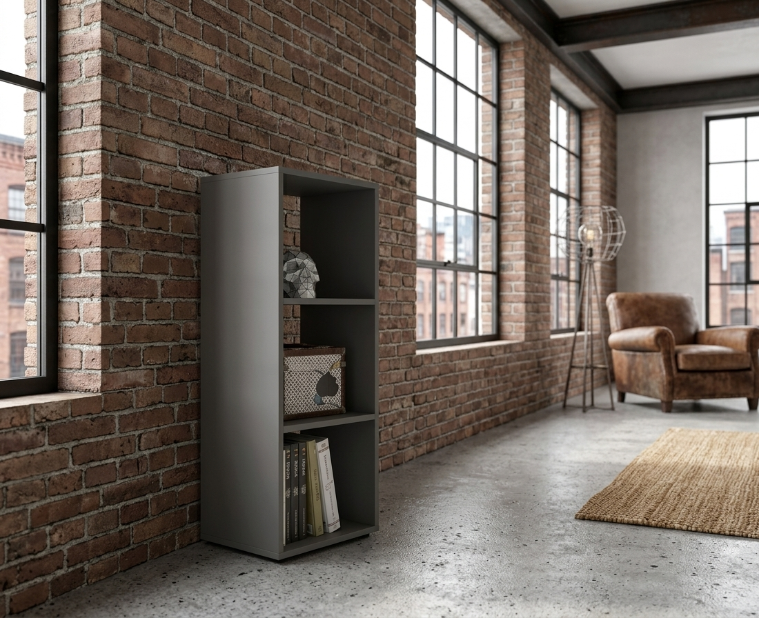 Regał pionowy w kolorze grafitowym o prostym wyglądzie to praktyczne i minimalistyczne rozwiązanie, które doskonale wpisze się w każde wnętrze. Nowoczesna forma regału idzie w parze z jego funkcjonalnością. Wykorzystanie wysokiej jakości płyty, o grubości 18 mm, zapewnia nie tylko trwałość, ale także łatwość w czyszczeniu, co sprawia, że ten estetyczny dodatek do pomieszczenia będzie służył latami. Dzięki modułowej konstrukcji możliwe jest tworzenie zestawów regałów i swobodne dostosowywanie ich do indywidualnych potrzeb i rozmiarów pomieszczenia. Grafitowy regał pionowy pozwoli optymalnie wykorzystać dostępną przestrzeń w Twoim wnętrzu.