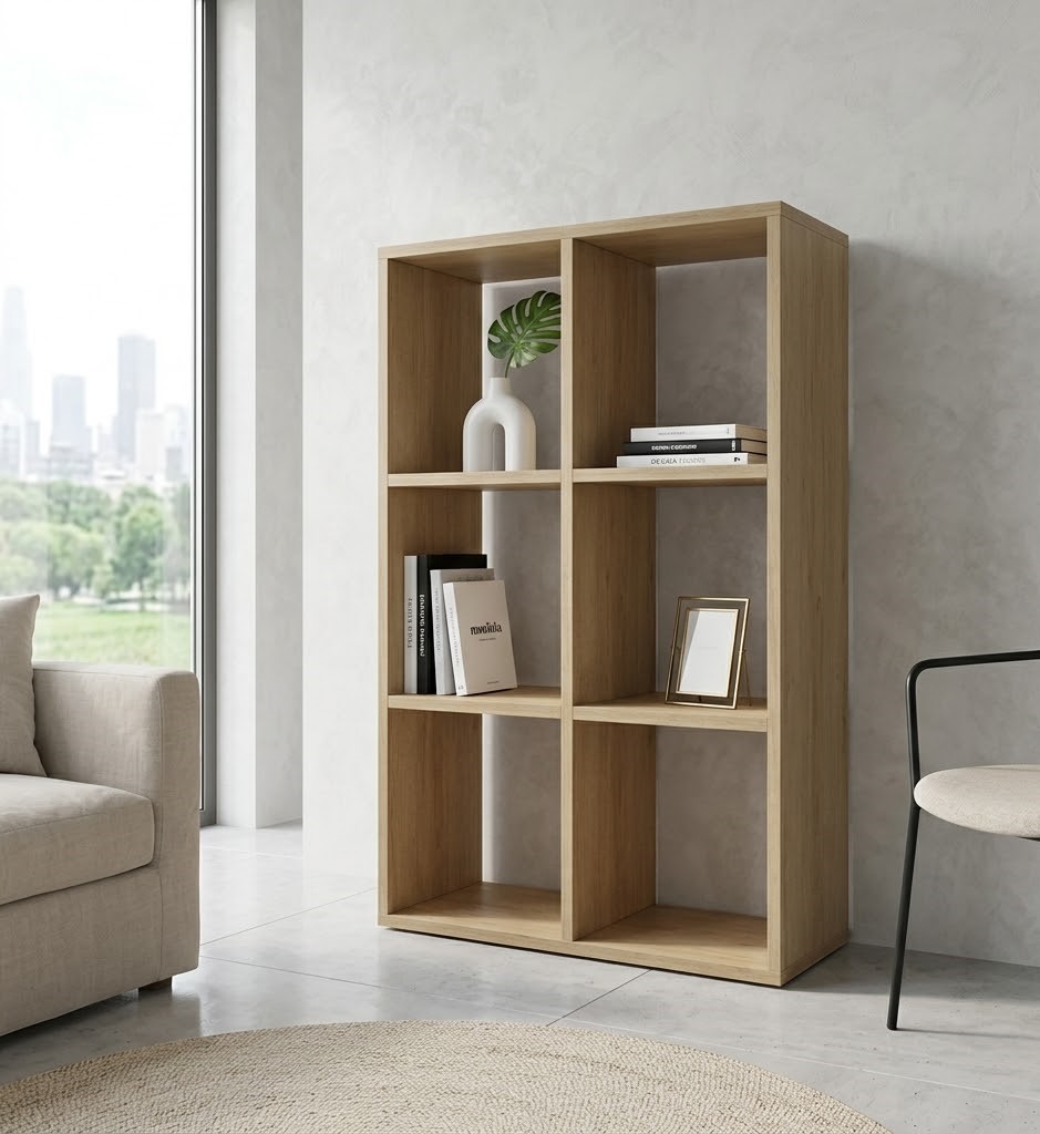 Regał modułowy z dwoma kolumnami to idealne rozwiązanie do organizacji przestrzeni w domu lub biurze. Wykonany z wytrzymałej płyty laminowanej, zapewnia trwałość i stabilność na wiele lat. Jego laminowana powierzchnia imituje naturalne drewno dębowe, nadając mu ciepły i elegancki wygląd, który doskonale wpasuje się w różne style wnętrz. Regał posiada sześć pojemnych półek, oferujących mnóstwo miejsca na książki, dekoracje i inne przedmioty codziennego użytku. Dzięki modułowej konstrukcji, może być używany samodzielnie lub w połączeniu z innymi regałami, tworząc idealnie dopasowany układ przechowywania.