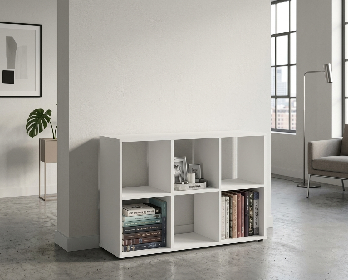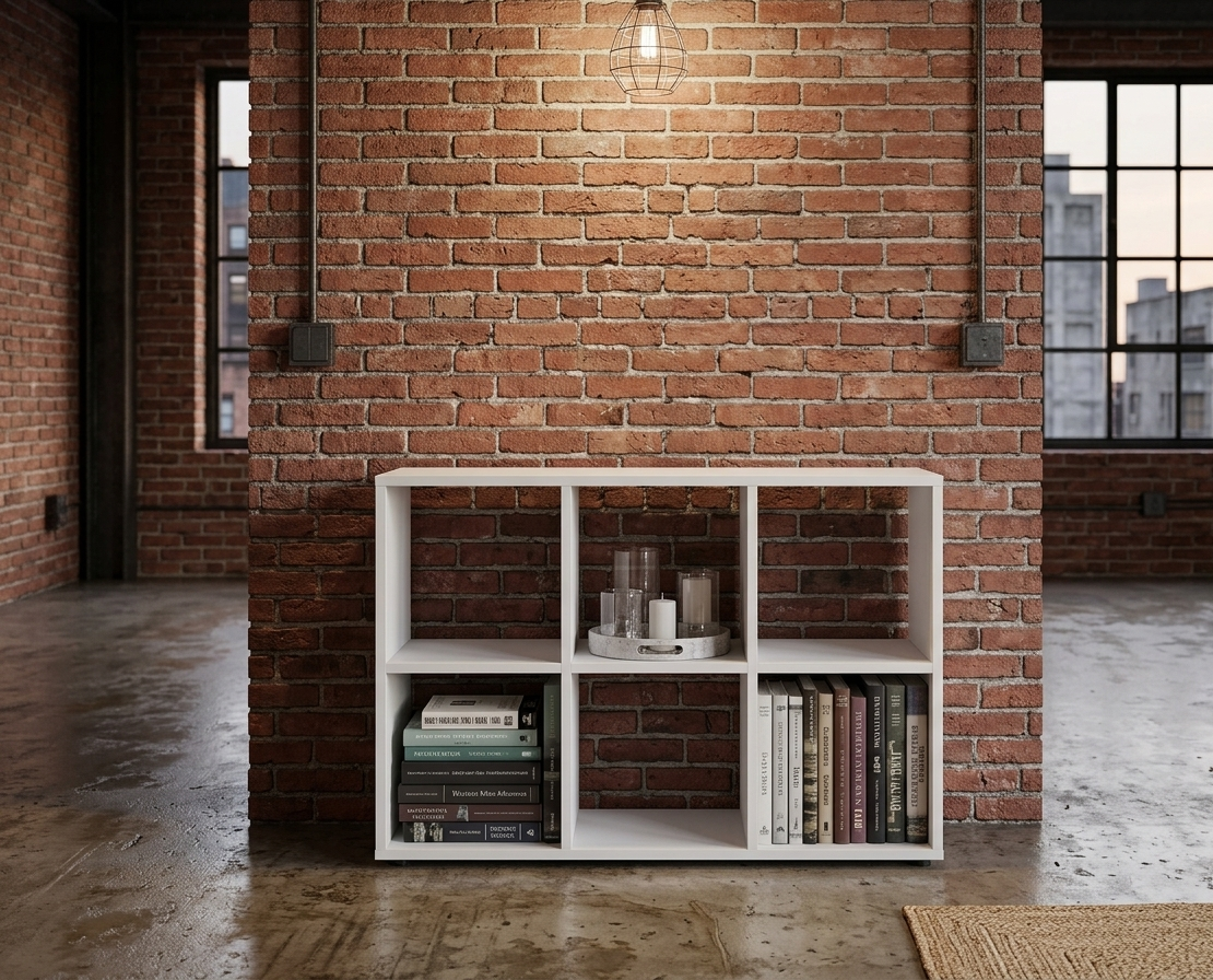 - Uniwersalna biel nadaje regałowi elegancki wygląd, pasujący do różnorodnych aranżacji wnętrz.
